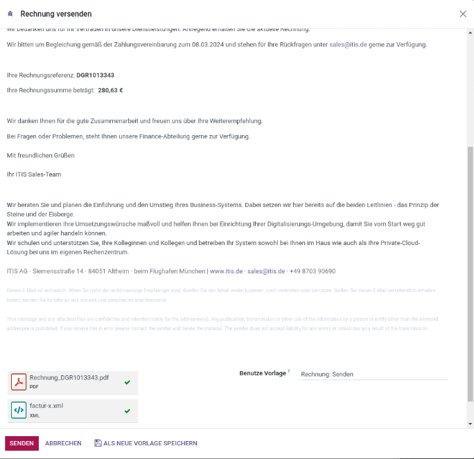 Mit „Senden & Drucken“ wird die XML automatisch eingebettet