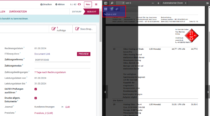 Eingebettete XML-Unterstützung (Factur-X / ZUGFeRD / XRechnung)