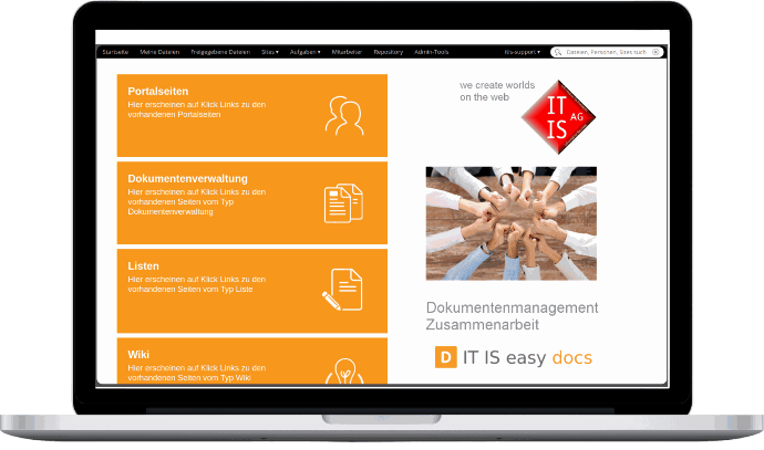 ITISeasy.docs - your excellent document management system (DMS), complemented by workflows, portal functions, a wiki and media comp onents (ECM).​